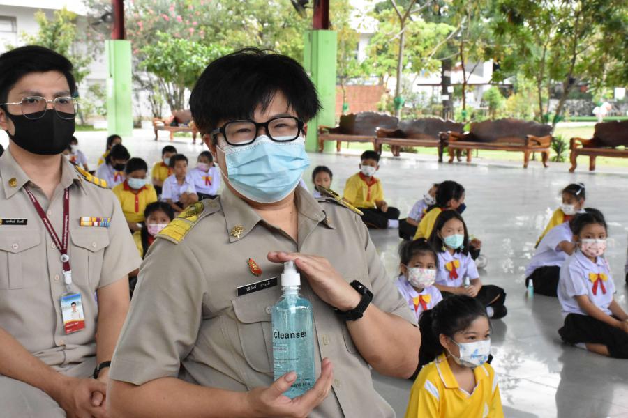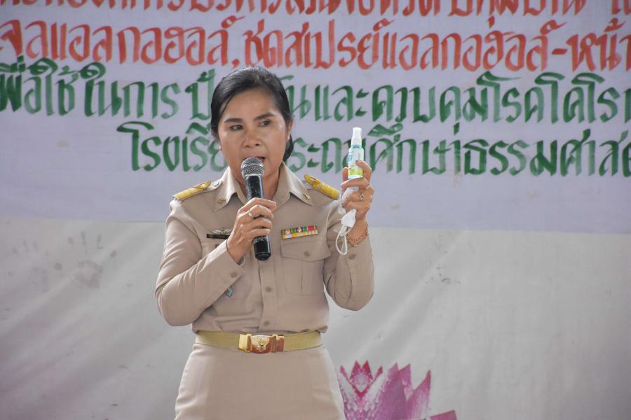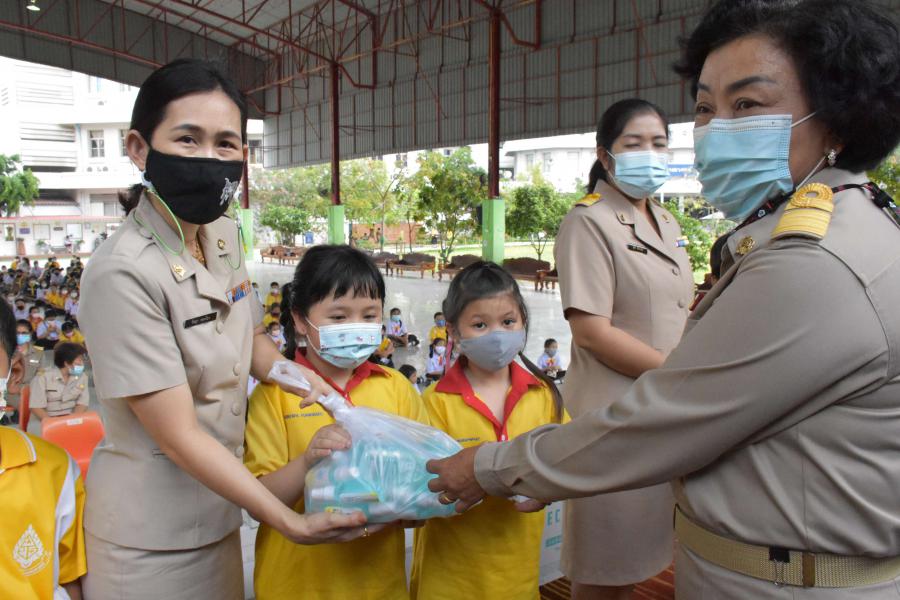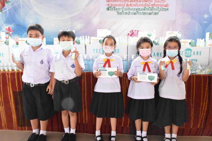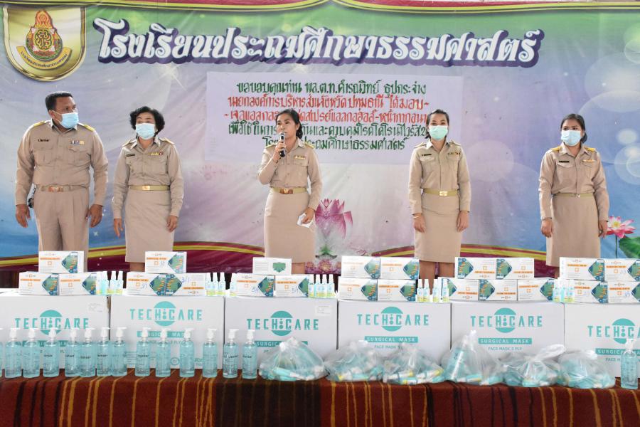 รับมอบอุปกรณ์ป้องกันเชื้อโรคไวรัสโคโรนา จากนายกองค์การบริหารส่วนจังหวัดปทุมธานี (พล.ต.ท.คำรณวิทย์ ธูปกระจ่าง) ณ อาคารโดมเอนกประสงค์โรงเรียนประถมศึกษาธรรมศาสตร์